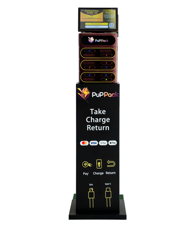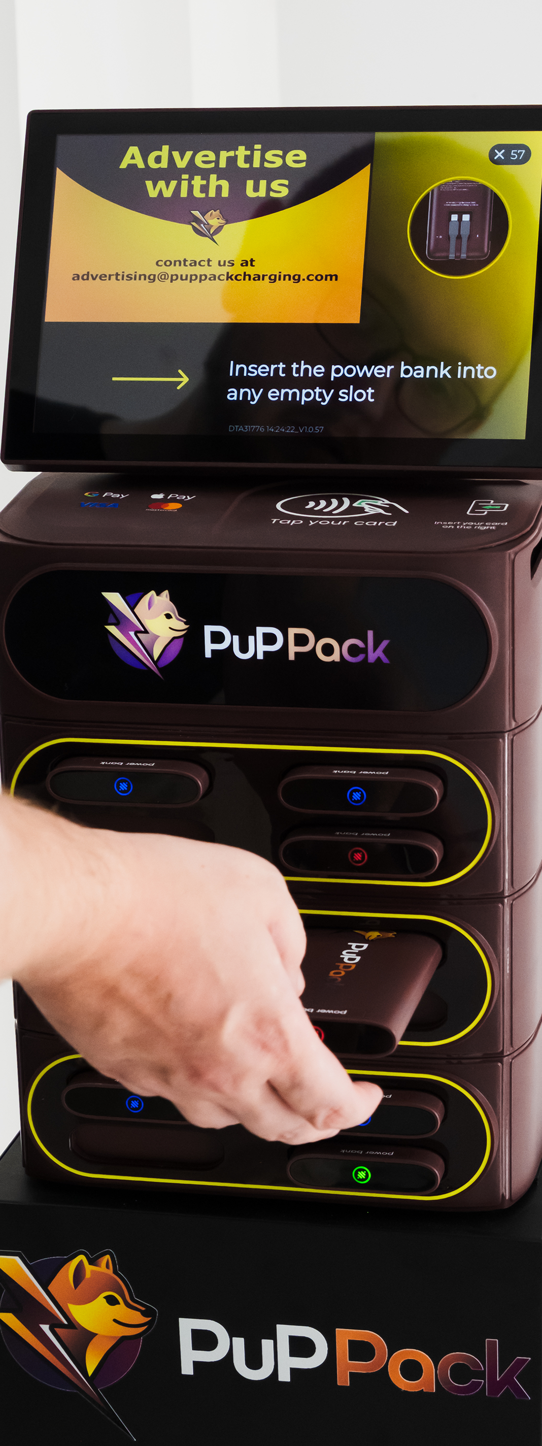 Renting a PUPPack is affordable and convenient. Download our app, or just tap a card, and out pops a PUP Pack, ready to charge your devices.