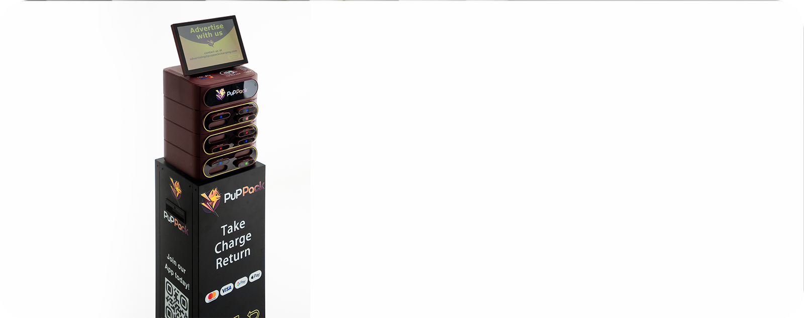 Our power banks have the PuPPack logo and brand colors so that people can quickly identify our stations and the partner locations conveniently.